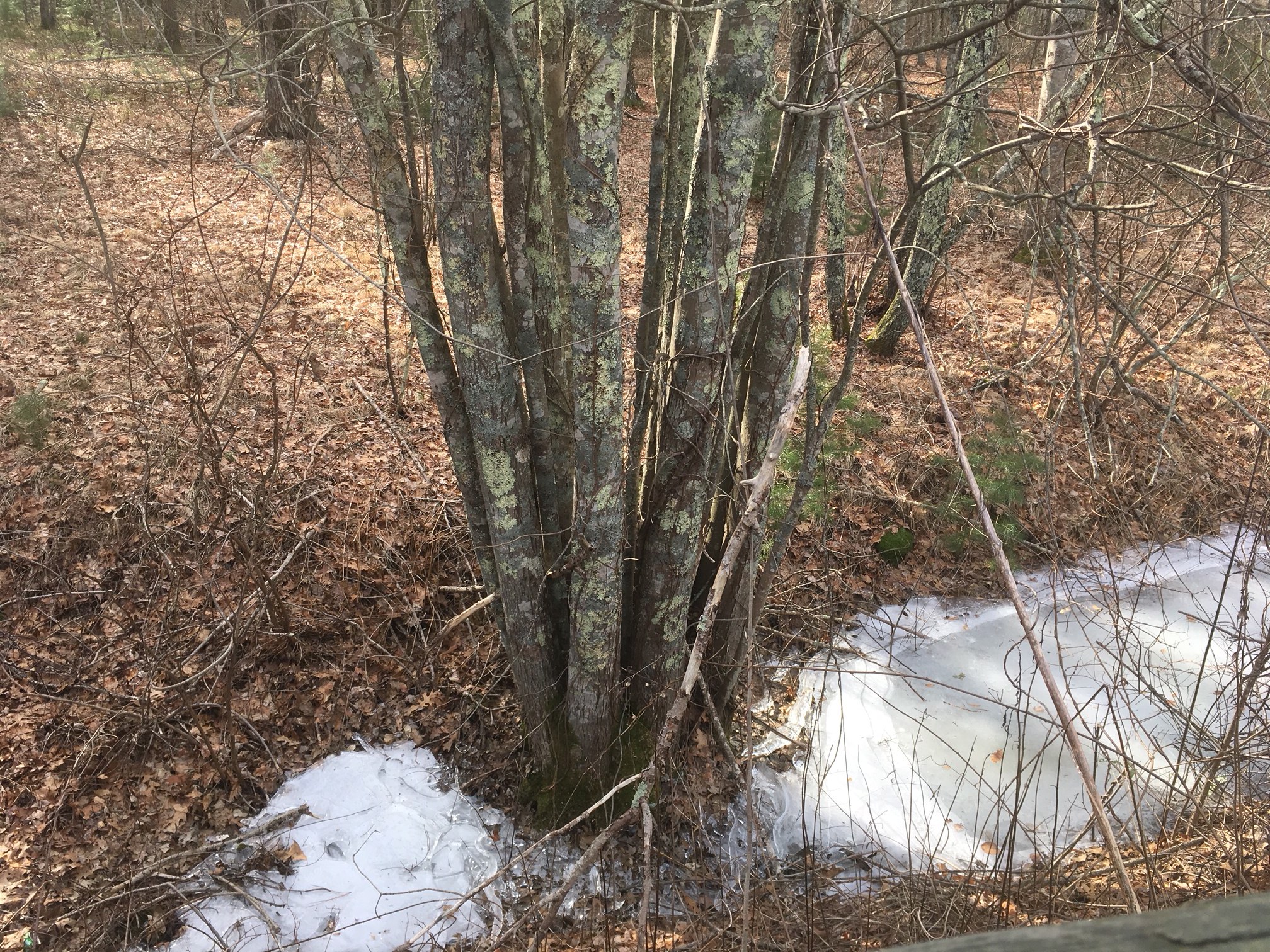 At present, the Great Swamp is a Great Swamp—full of water. Where the sun shone, open water surrounded the red maples, which are ubiquitous in the giant wetland. In shadier spots, ice encased the base of the trees. Where there was a rise in elevation—even a few inches—oaks and white pines took hold, and ground pine carpeted the forest floor.