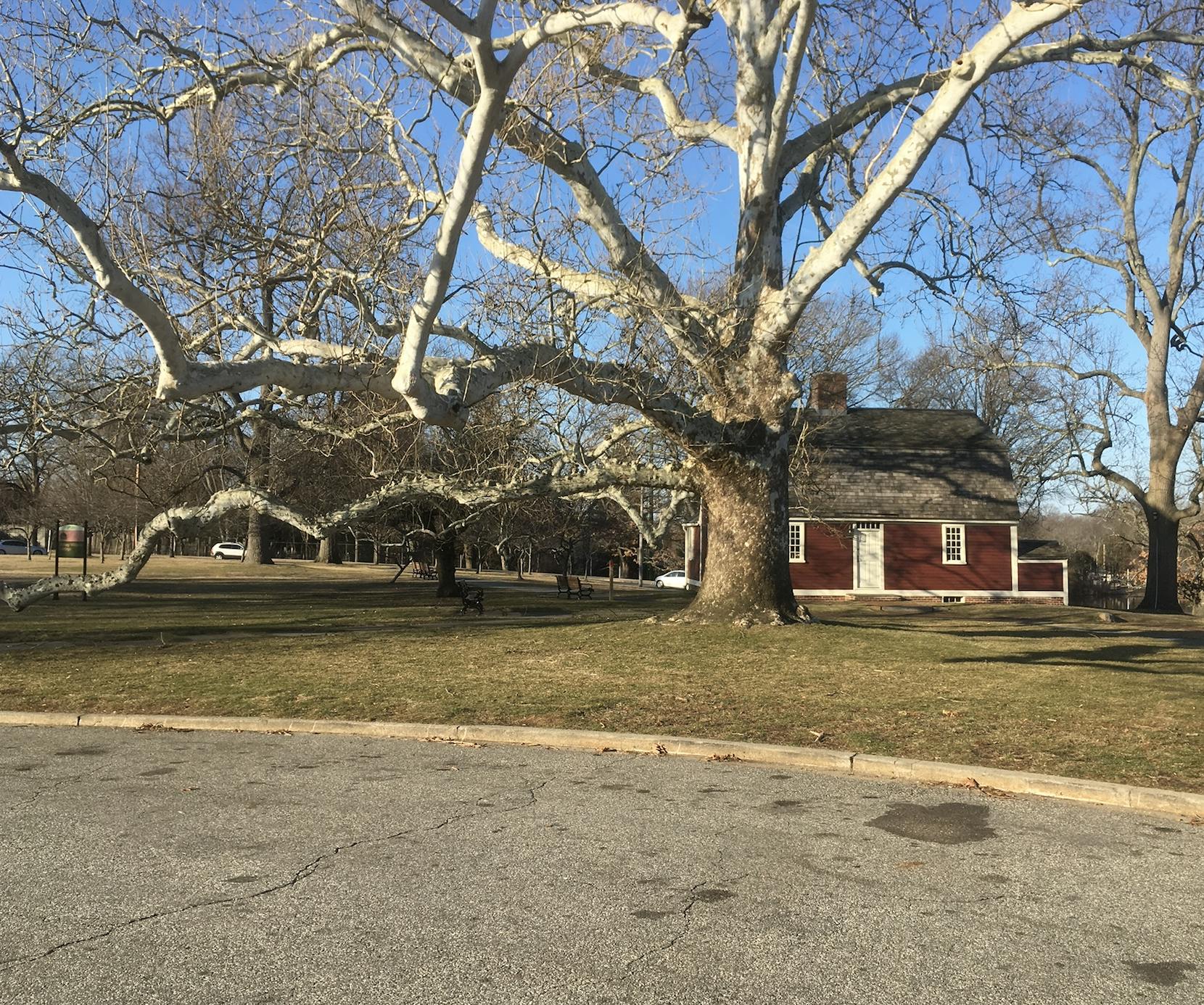 Wanting even more tree company, I circled around to the Betsey Williams Cottage and the spectacularly shaped American sycamore tree beside it. Also, there was a large tulip tree, pyramidal in form beside a more-tapering pin oak. Meanwhile, a squat cork tree, with its warty dimples, featured limbs that twisted over the turf. I meandered around a groove of conifers that included conical specimens of fir, spruce, cedar, pine, and larch.