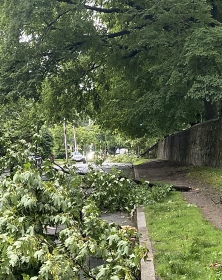 In Providence, large tree limbs were downed on the East Side (see here) by the Brown University Athletics complex.
