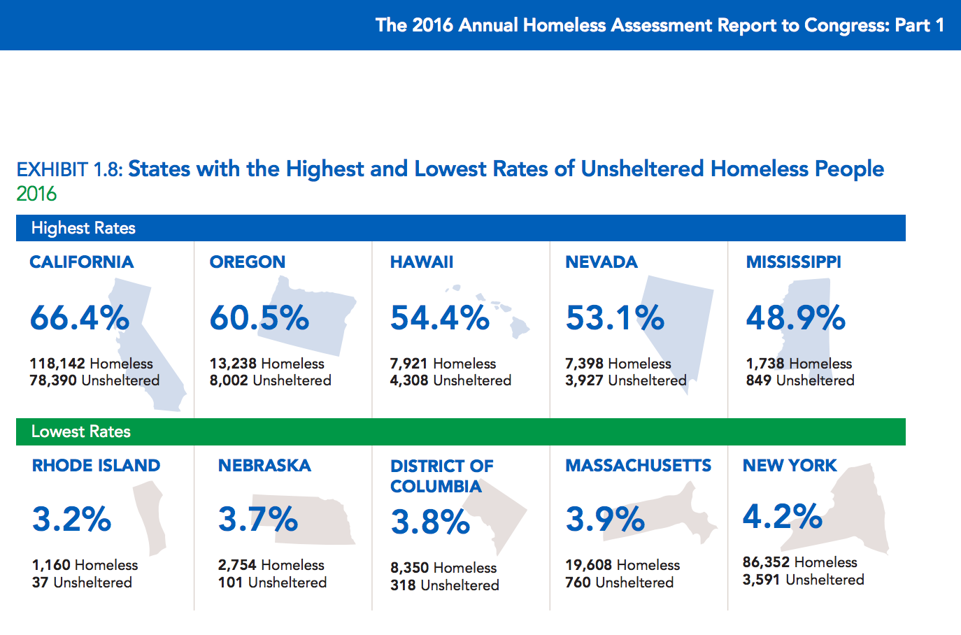 According to the federal government, Rhode Island has among the lowest percentage of unsheltered homeless residents in the country. The 2016 Annual Homeless Assessment Report to Congress issued by the Housing and Urban Development Department has Rhode Island having under 1,200 homeless "unsheltered" — at a rate of just 3.2 percent.
