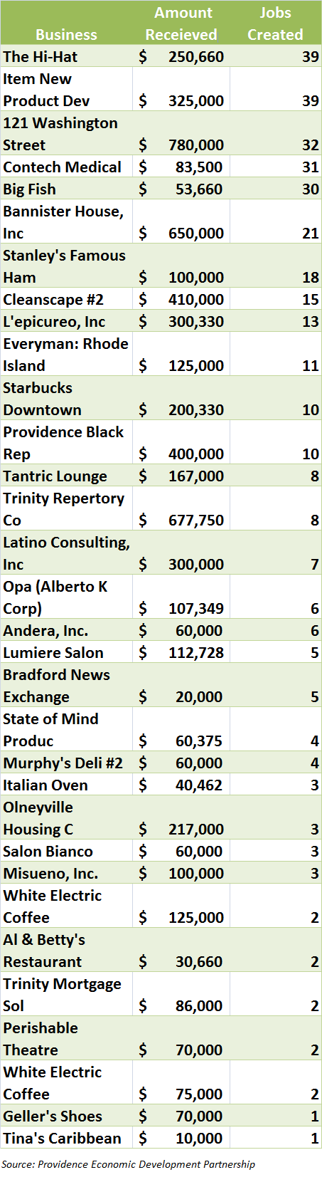 GET THE LATEST BREAKING NEWS HERE -- SIGN UP FOR GOLOCAL FREE DAILY EBLASTBut a closer look at loans provided between 2003 and 2010 under former Mayor and now Congressman David Cicilline paints an even gloomier picture. According to a loan report provided to GoLocalProv last fall, less than three dozen businesses reported creating new jobs under Cicilline. During that time span, approximately 100 loans were distributed, although not all were intended for job creation.