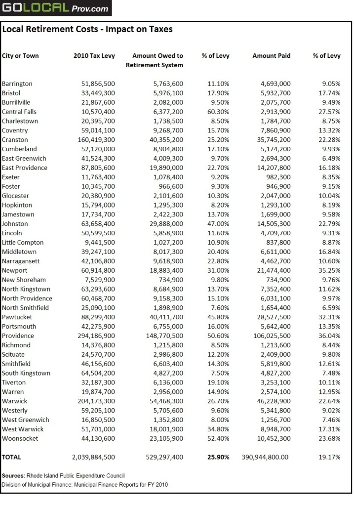 The problem is perhaps most acute in the City of Central Falls, whose fiscal woes have landed it in state-run receivership. The current appointed receiver, former state Supreme Court Associate Justice Bob Flanders, told GoLocalProv that the state’s smallest city simply does not have the tax base to cover the annual required contributions to the retirement system and run city services at the same time.