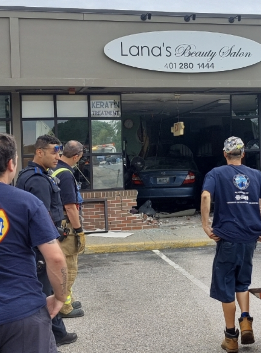 The beauty salon on Gansett Avenue — Lana’s — was closed for the day at the time of the accident, and no one was reportedly hurt.