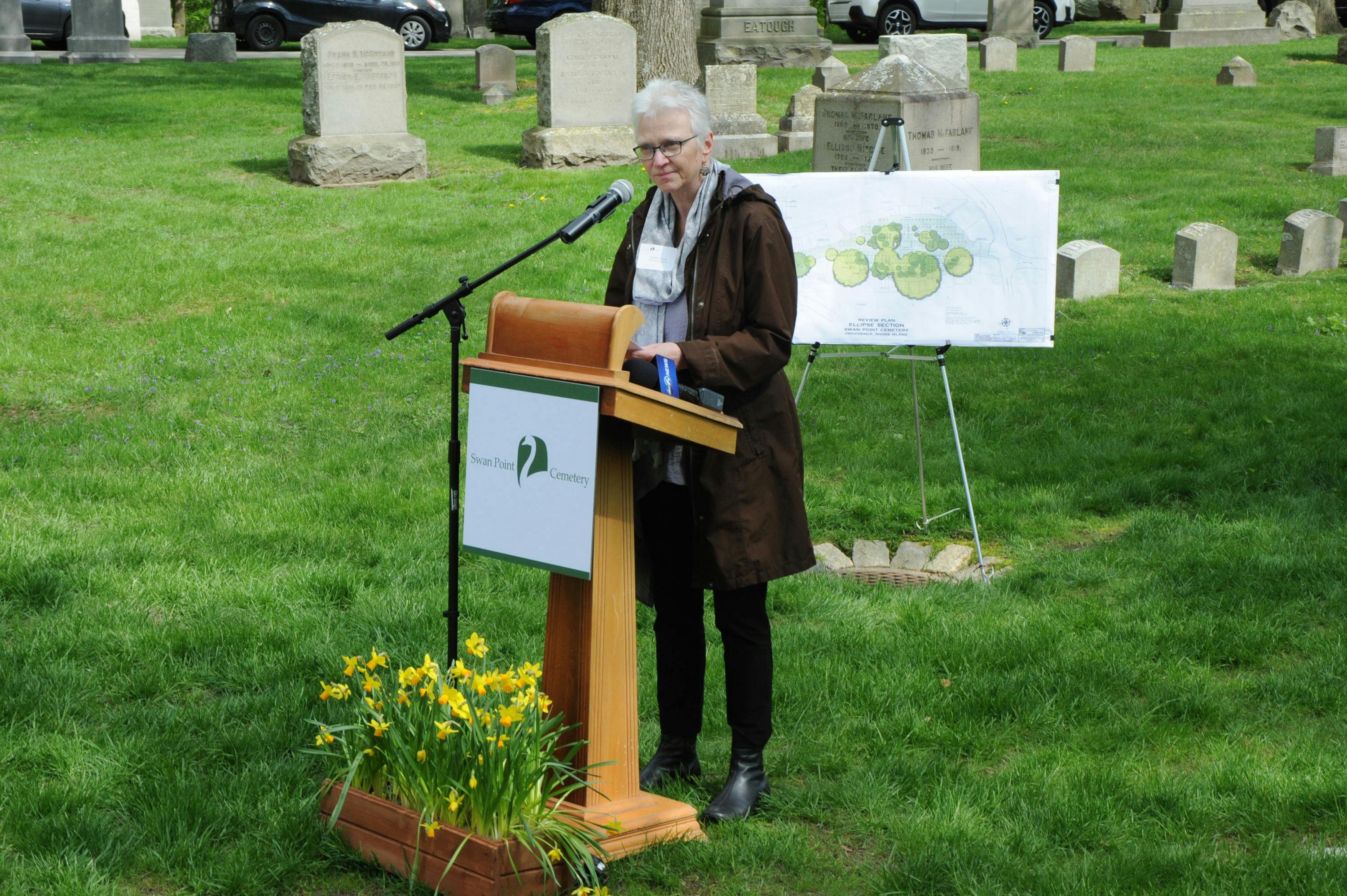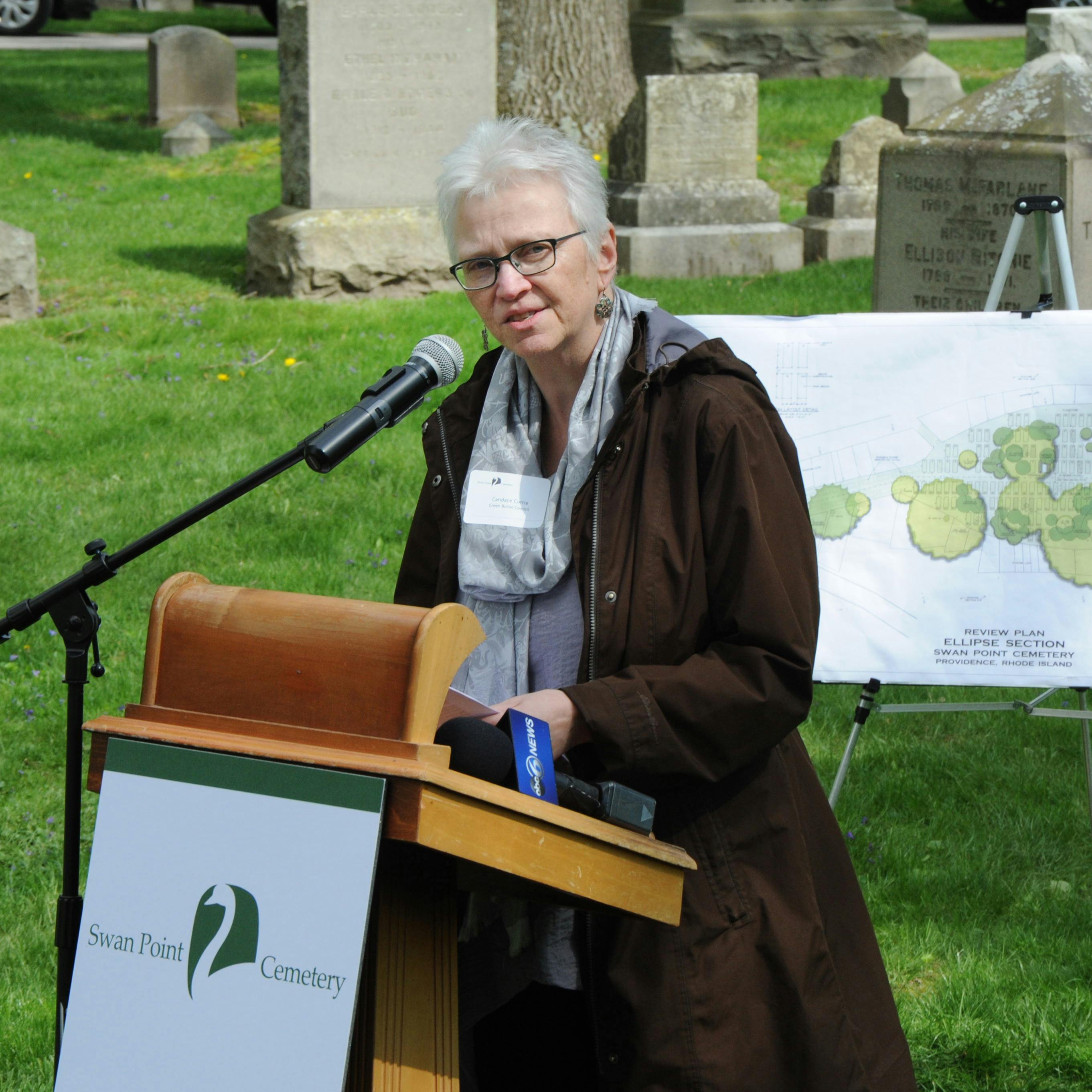 The featured speakers included Candace Currie from the Green Burial Council; The Reverend Doctor Anita Louise Schell, Rector, Emmanuel Church, Newport, Rhode Island; Tom Goddard, Chairperson of the Board of Directors, Swan Point Cemetery; and Anthony Hollingshead, President, Swan Point Cemetery.