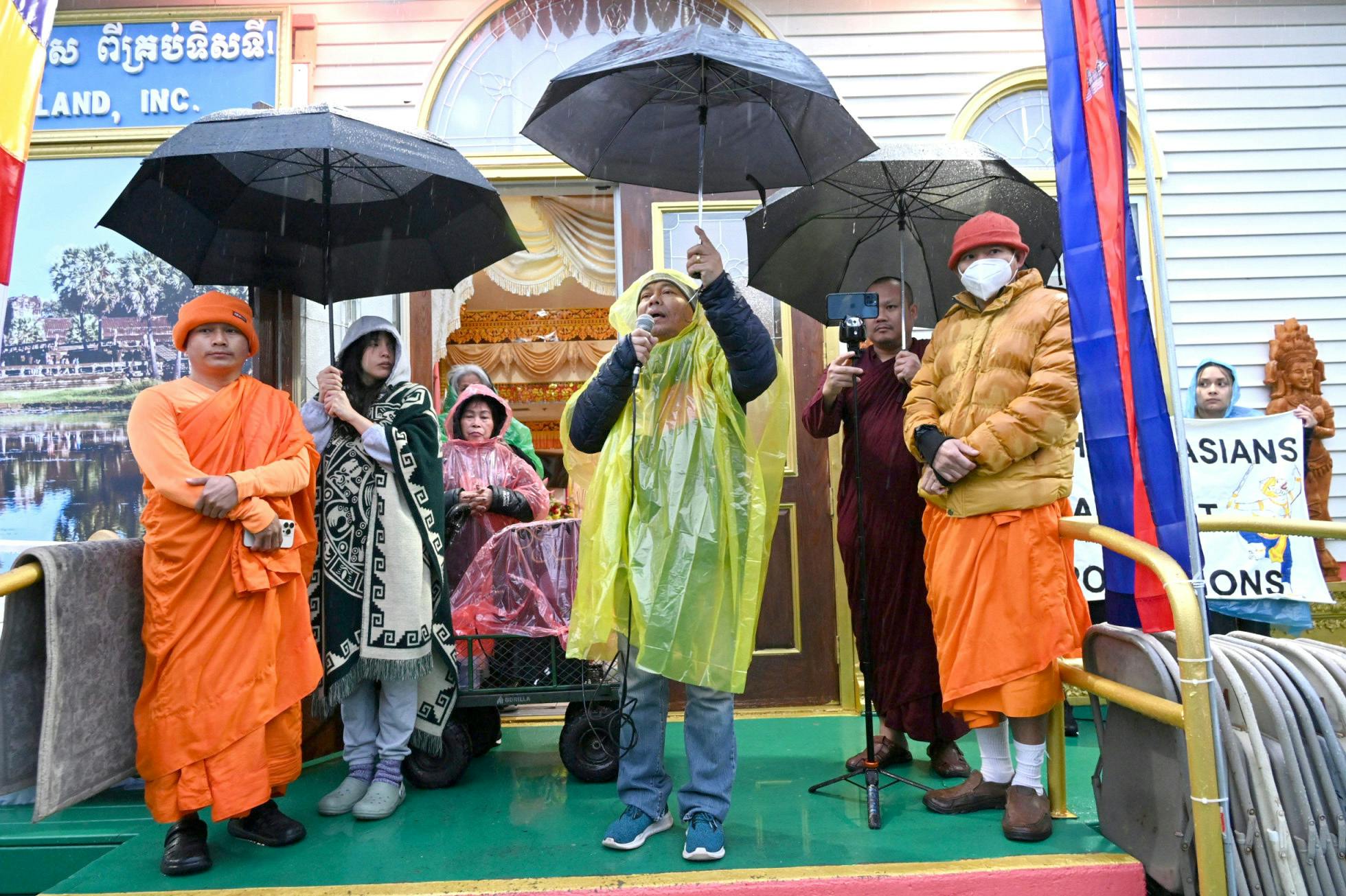 The community rally began at Wat Thorikaram Buddhist Temple in Providence.