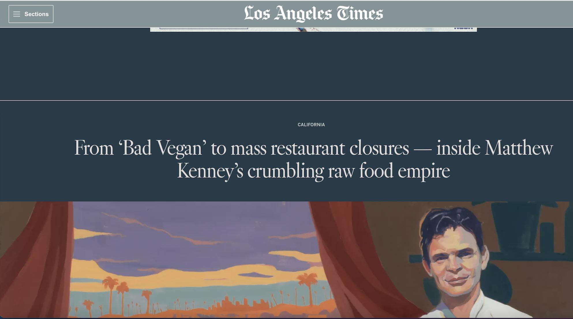 The New York Times article is titled, "Behind a Vegan Chef’s Holistic Empire, an Ugly Reality — Matthew Kenney, one of the most famous names in plant-based cuisine, has left a trail of burned investors, bounced paychecks and graphic text messages."