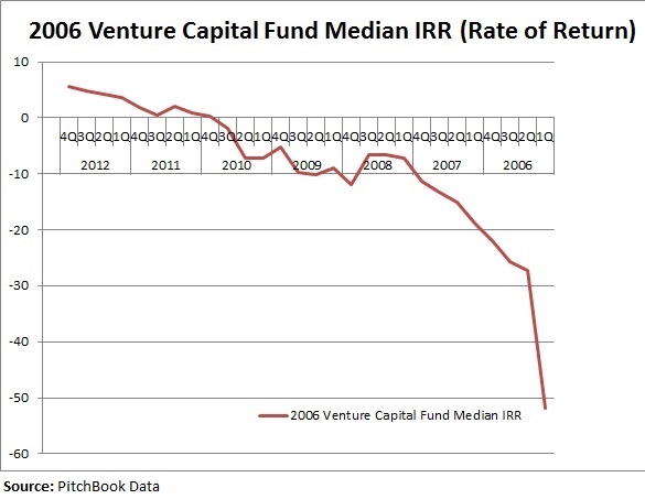 The pattern is often described as a J curve. “The investment returns are routinely negative in the early years (the dip in the J) as the venture firm incurs costs to improve the performance of the companies it backs. When these early expenditures begin to bear fruit, the performance of the companies improves and their value should increase significantly (the ascender in the J),” Fox wrote.