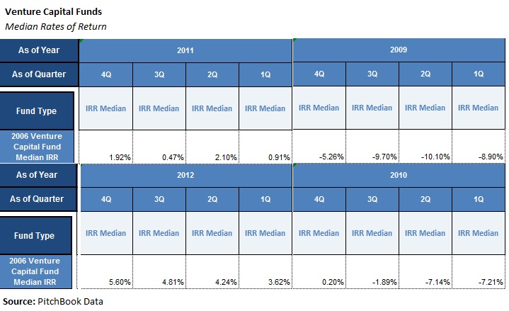 Point Judith is currently pulling ahead in another benchmark issued by PitchBook, which shows that the median rate of return for 42 venture funds it surveyed ranged from 3.62 percent in the first quarter of 2012 to 5.6 percent in the last.