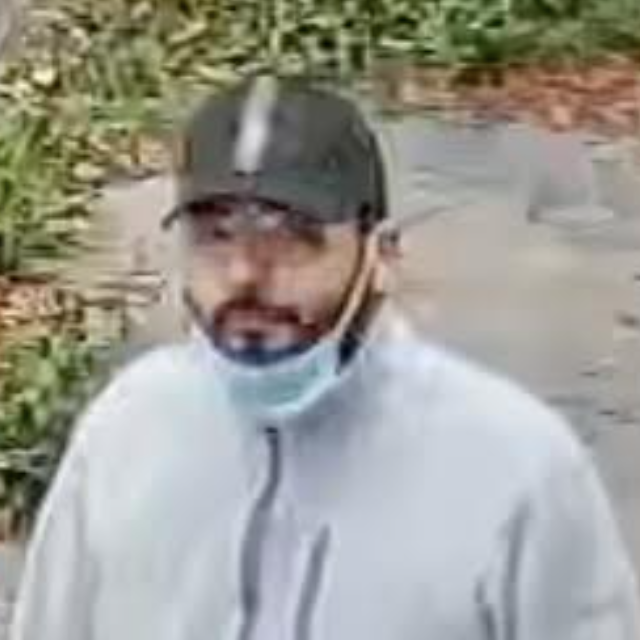 He was further described as a light-skinned male with a dark-colored beard and mustache wearing blue jeans, a grey quarter zip sweatshirt, light brown work boots, a Gucci hat, a blue surgical mask and spoke with a Hispanic accent.
