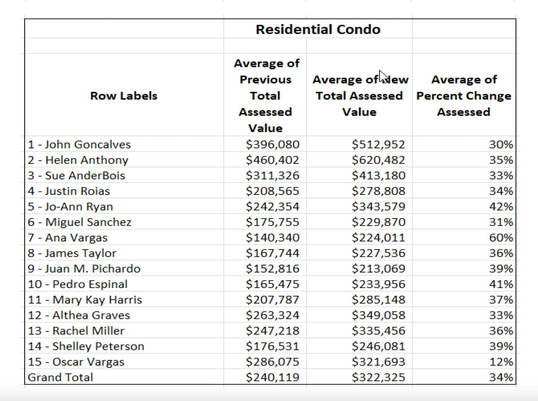 Condos' assessed value increased on average by 32%.