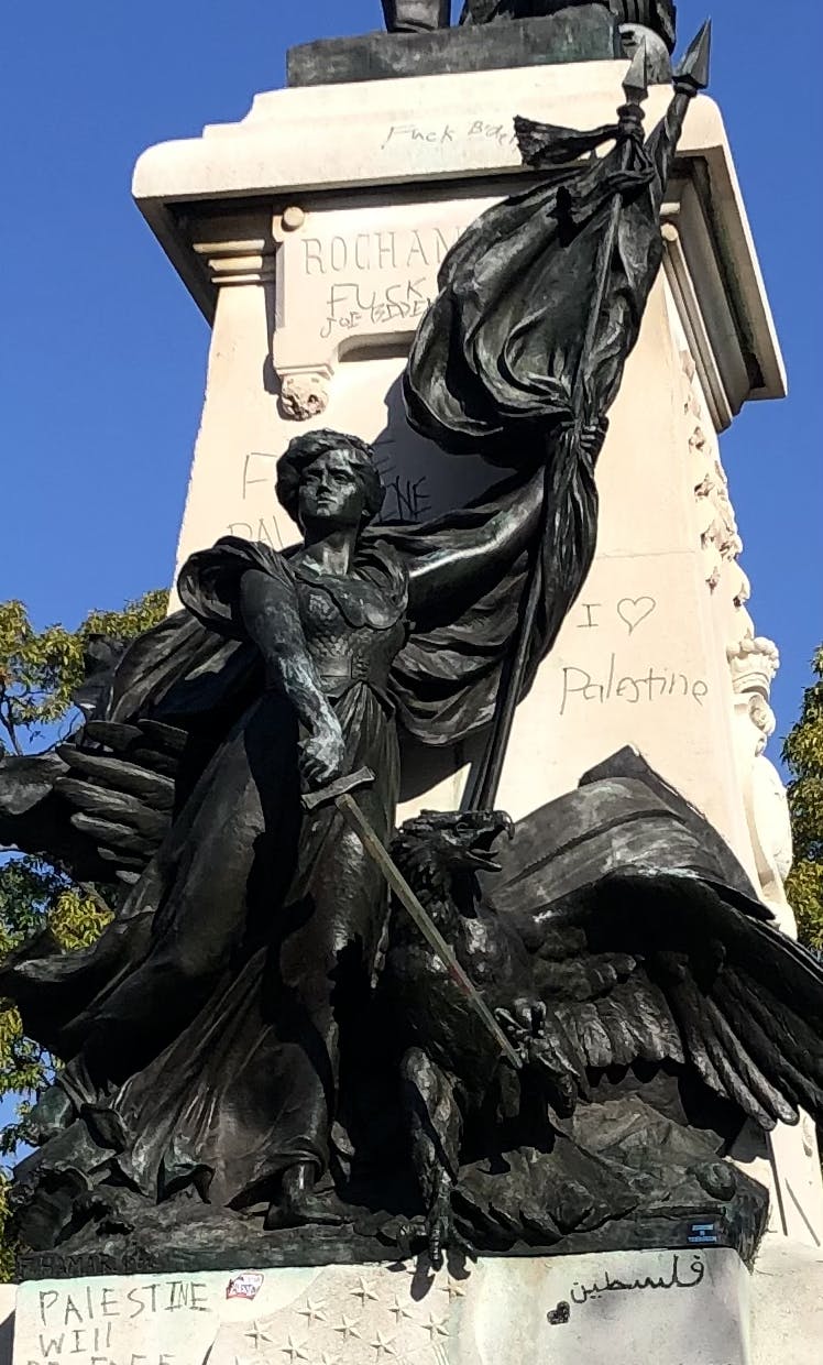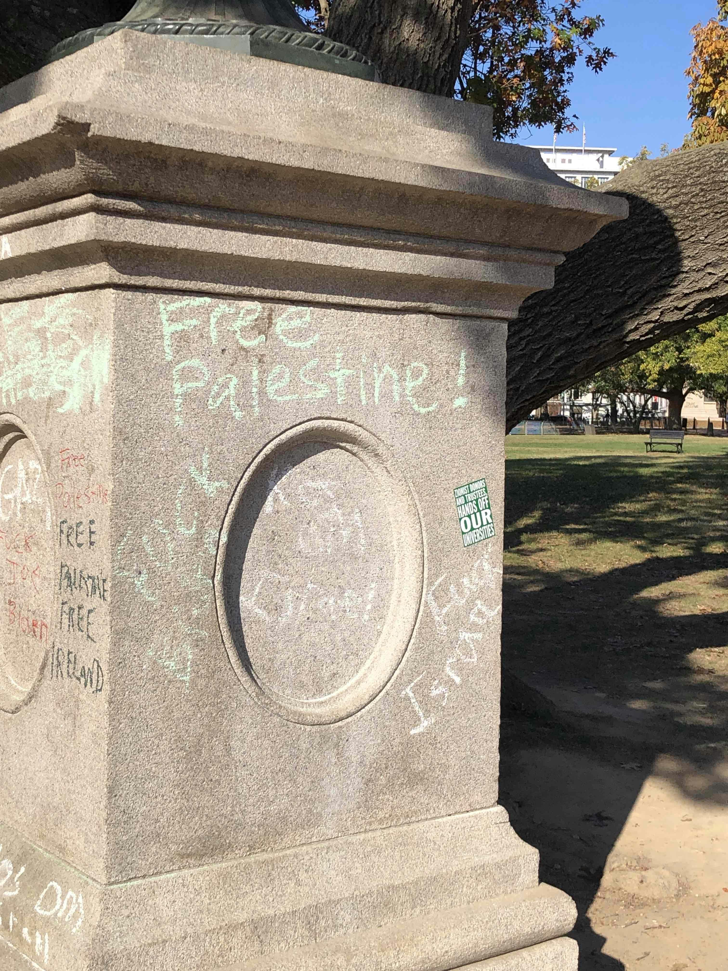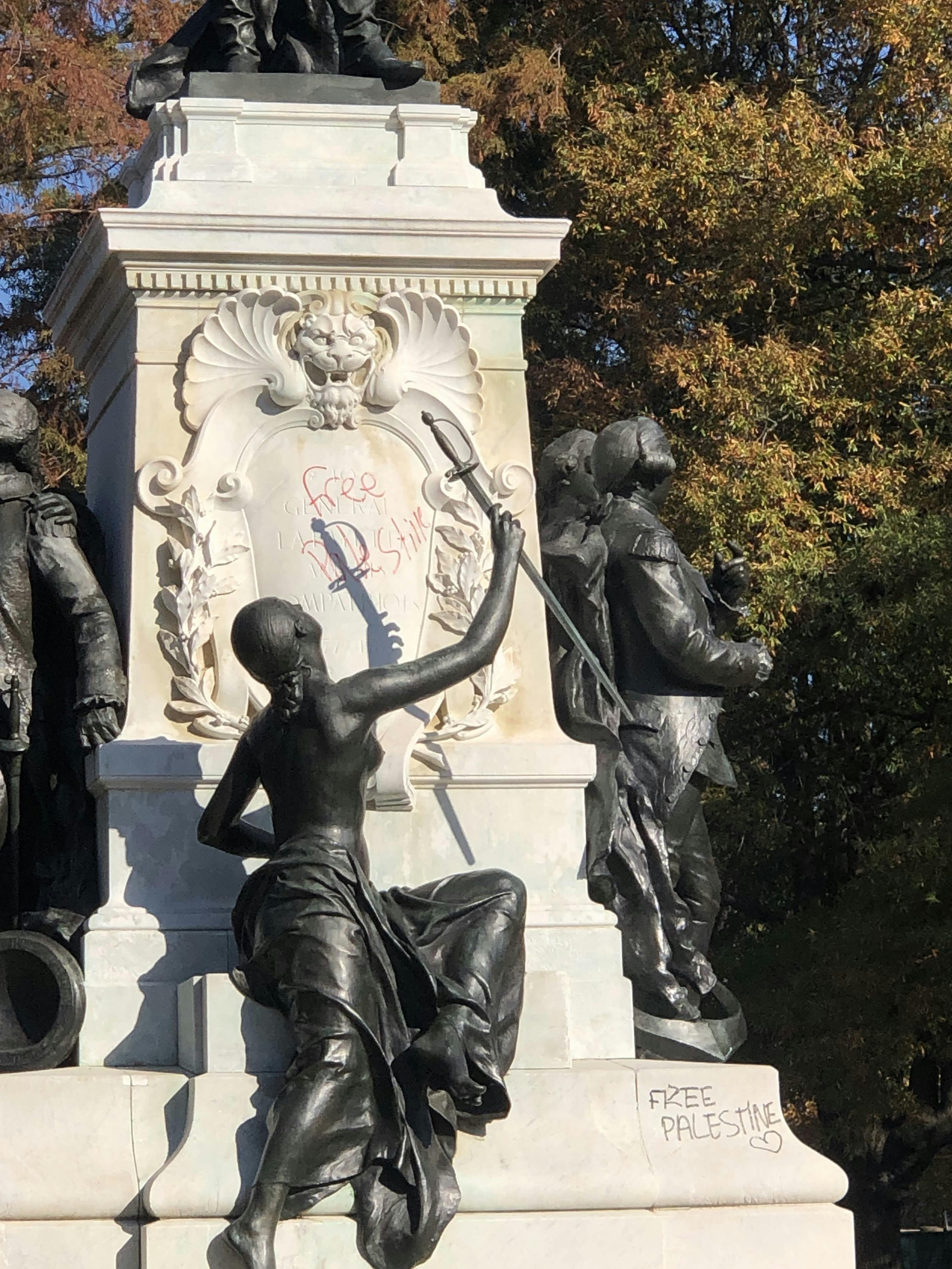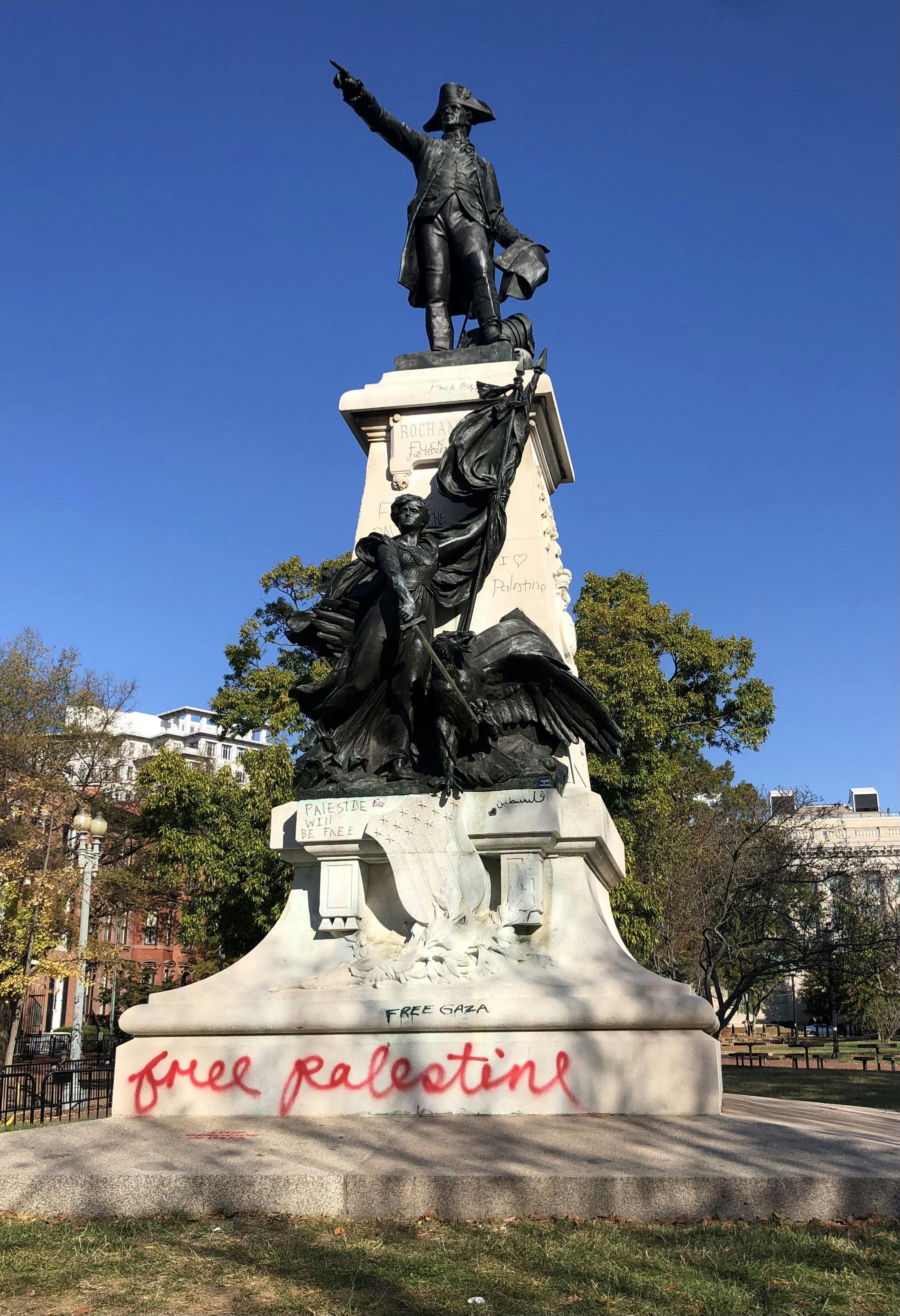 The rally left the area around the White House covered with graffiti -- anti-President Joe Biden and "free Palestine" messages can be seen on statues throughout the area.