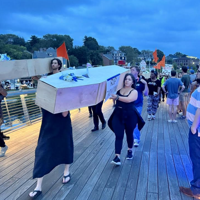 Protesters Take to Pedestrian Bridge on First Night of PVDFest to Bring Attention to ACI Deaths