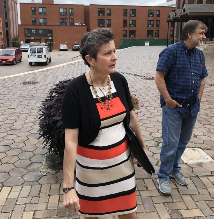 Protesting outside Diocese of ProvidenceCarolyn Medeiros with the Alliance for Safe Communities and a small group of protestors gathered in front of the Cathedral of St. Peter and Paul calling for Bishop Thomas Tobin’s resignation for his role as the Auxiliary Bishop of Pittsburgh in the early 1990s.