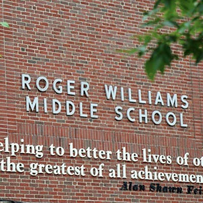 The Roger Williams Middle School is a 4-story brick and limestone public school built in 1932 in Lower South Providence.