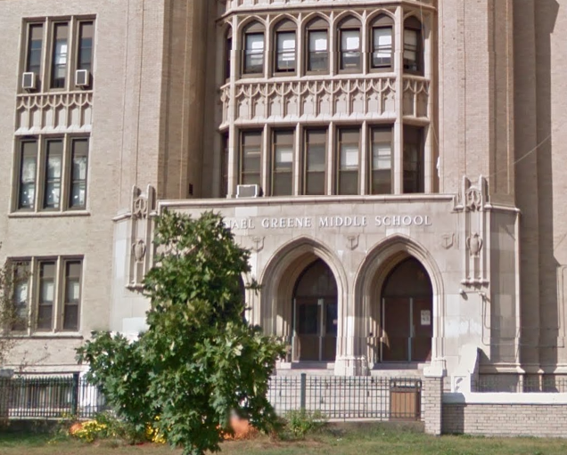 The Nathanael Green Middle School is a 3 story public school that was built in 1929 in Providence's Elmhurst neighborhood.