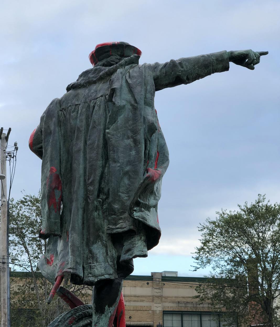 As GoLocal reported Monday, red paint was splattered across the statue, along with the word "Genocide" at the base -- and a sign stating "Stop Celebrating Genocide" at the pedestal.