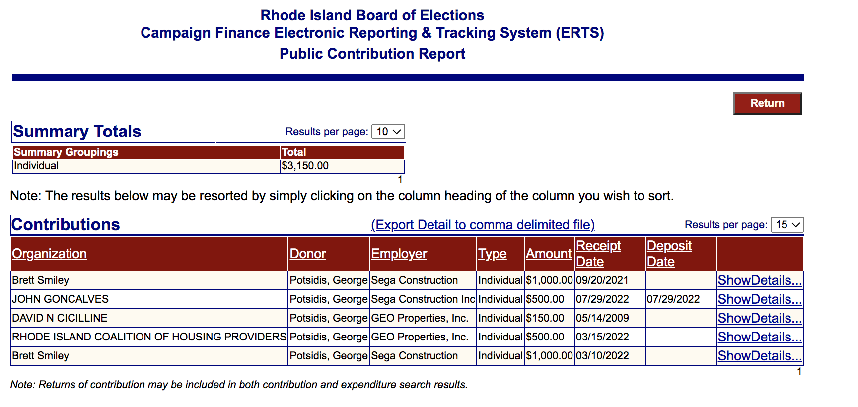A week following his letter, on July 29, 2022, Board of Elections records show that Goncalves received a $500 campaign contribution from the owner of the business seeking the license, George Potsidis. It was the developer's first donation to Goncalves, and the councilman was running unopposed for reelection.