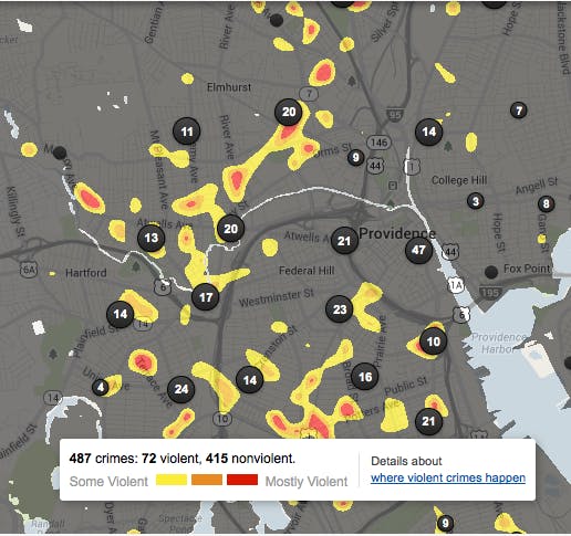 See crime maps and links for Providence -- as well as natural disasters and home value maps -- below.