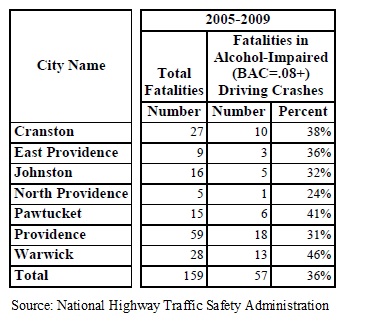 The disparity in arrest rates is reflected in another statistic: between 2005 and 2009, Providence had the highest number of alcohol-related traffic fatalities among the six communities.