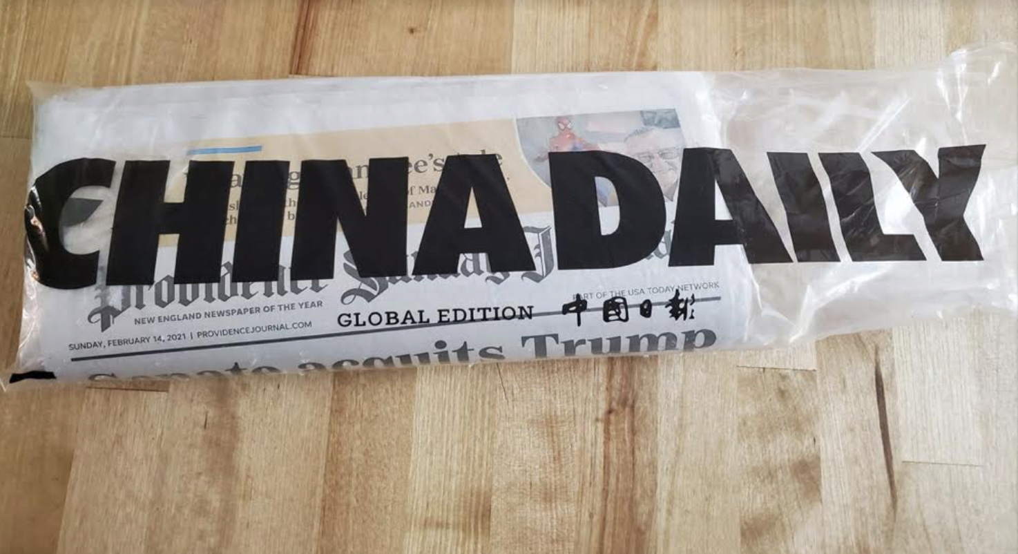 Providence Journal Delivered in China Daily Bag