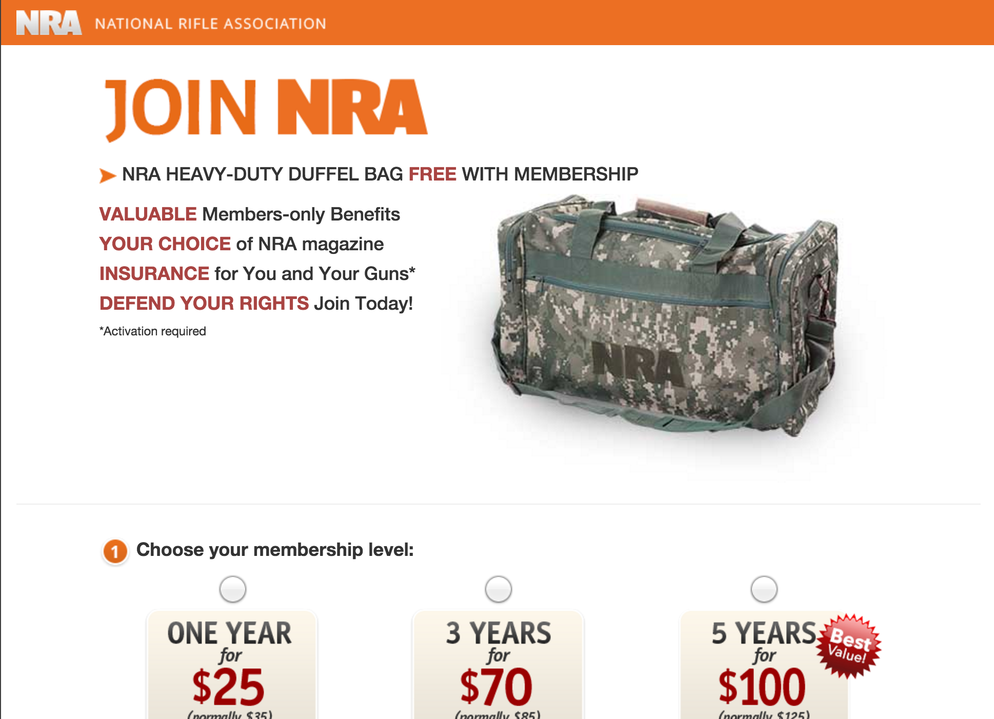 During the past week the Providence Journal has been running an ad campaign from the NRA that promotes the gun rights organization’s annual membership drive and offers a free heavy-duty duffel bag with membership.