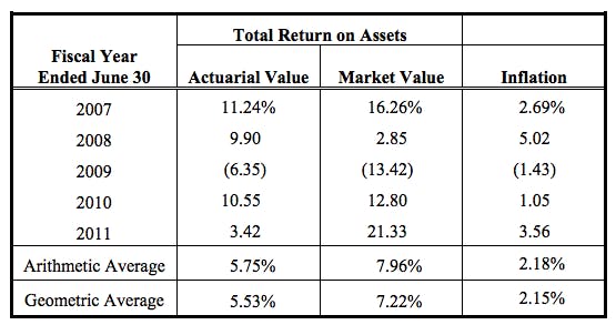 "The expected investment income is based on the System's assumed interest rate," Buck wrote. "The current interest rate assumption is 8.25%, which is higher than the 5.75% five-year actuarial rate of return reported."