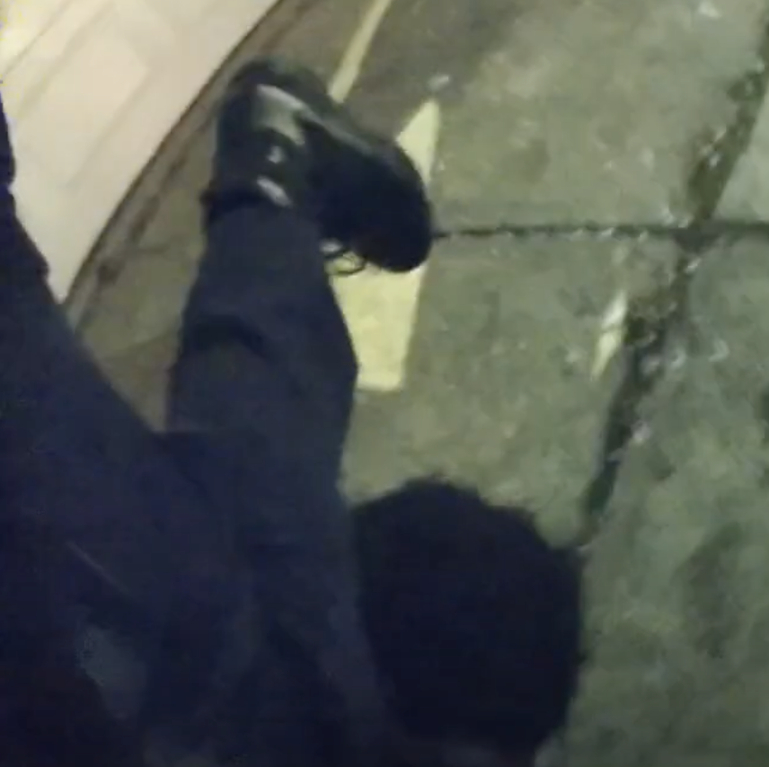 • Kneeling on the back of his neck/shoulder (Sergeant Hanley appears to use the open car door as support, lift his supporting foot off the ground bearing his full weight on the complainant’s neck and shoulder)
