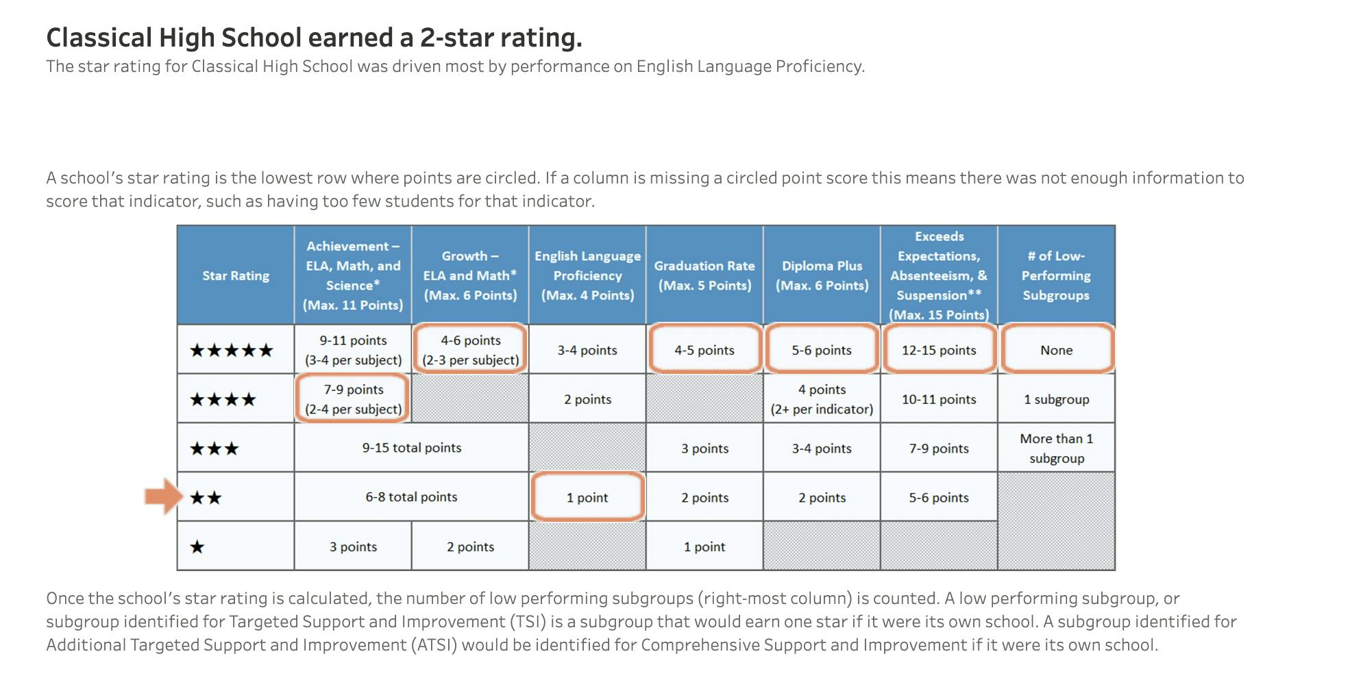 As part of the assessment, each school is given a star "accountability" ranking, with 5 stars being the best. SEE ALL SCHOOL RANKINGS HERE