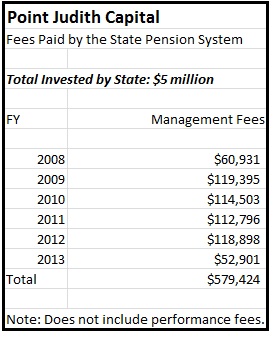 The state did not invest all of its money at once in Point Judith. Instead it phased in its investment, meaning that for a few years, Point Judith was not responsible for managing all of the money. Nonetheless, state records suggest that the firm was paid a fee based on the entire amount of the investment, rather than the amount of actual assets it was managing.
