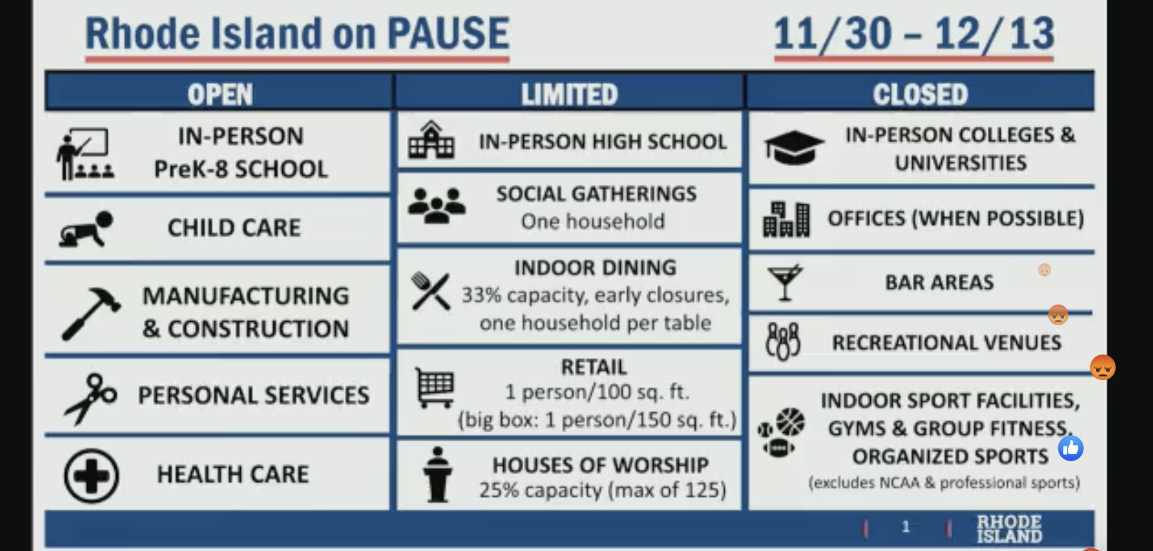 "I have tried to avoid any lockdown or stay at home order," said Raimondo. "I’ve had targeted restrictions."