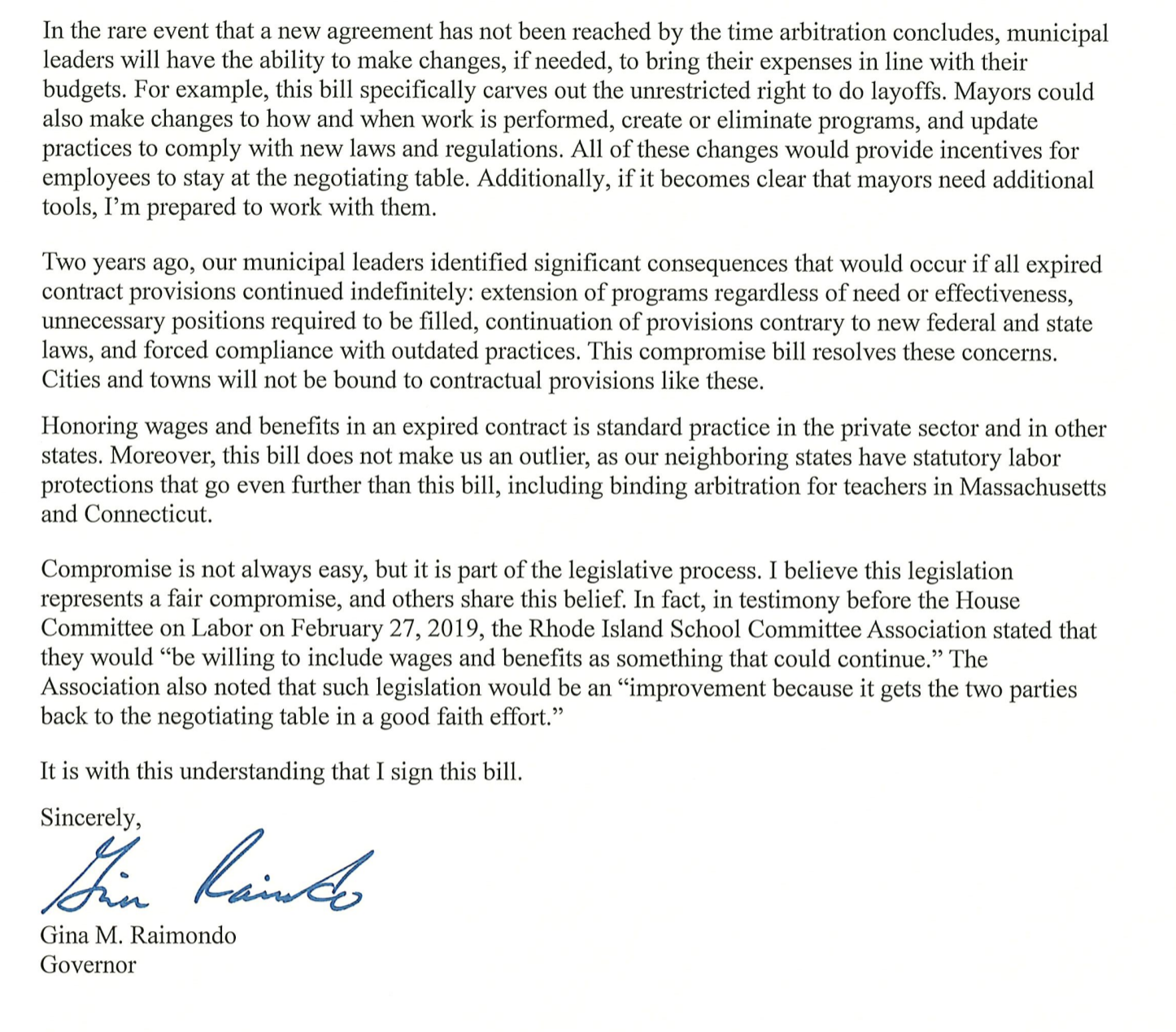 READ: See Raimondo’s Letter Explaining Her Position on Evergreen Contracts BELOW
