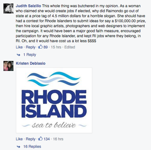 National press picked up on the dissatisfaction in Rhode Island for the “cooler, warmer” logo unveiled, with AdWeek writng of the NY-based designer who’d been tapped for the effort, “Milton Glaser is famous for the ‘I Love New York’ logo. So how did he do with Rhode island? Some Ocean State Natives are critical of the campaign.”