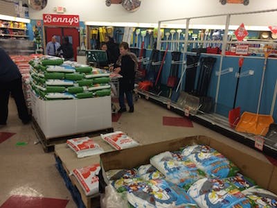 The Benny's on North Main Street had a good stock of salt and shovels on Monday afternoon. Stock was being replenished frequently throughout the afternoon.