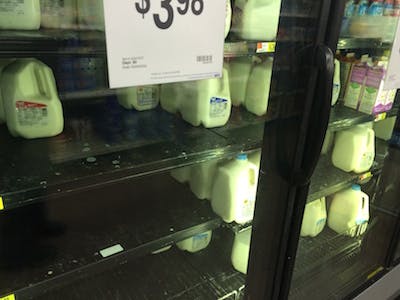 Milk was in high demand at WalMart on Monday, but the supply was being replenished frequently throughout the afternoon.
