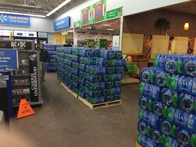 WalMart on Silver Spring Street was well stocked with water on Monday afternoon.