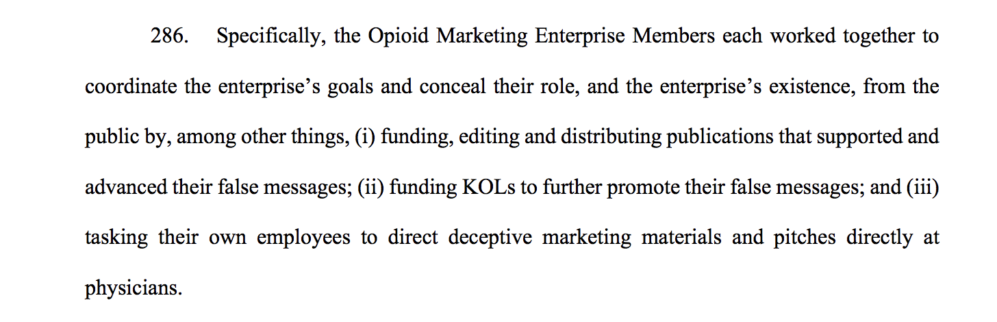 A portion of the federal lawsuit -- "KOL" refers to "key opinion leaders."
