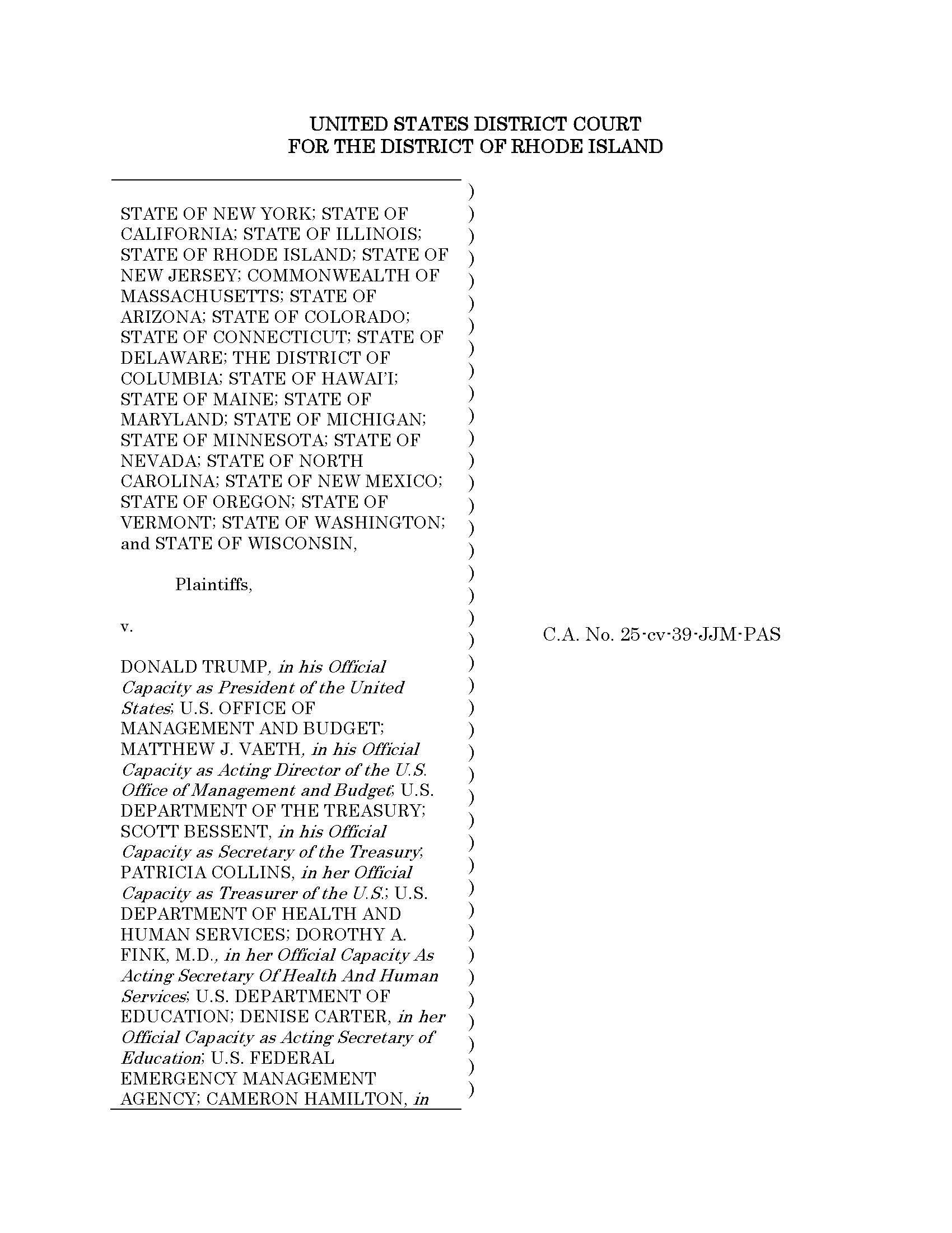 RI Federal Court Judge Orders Trump Admin. to Comply With Earlier Ruling on Federal Spending