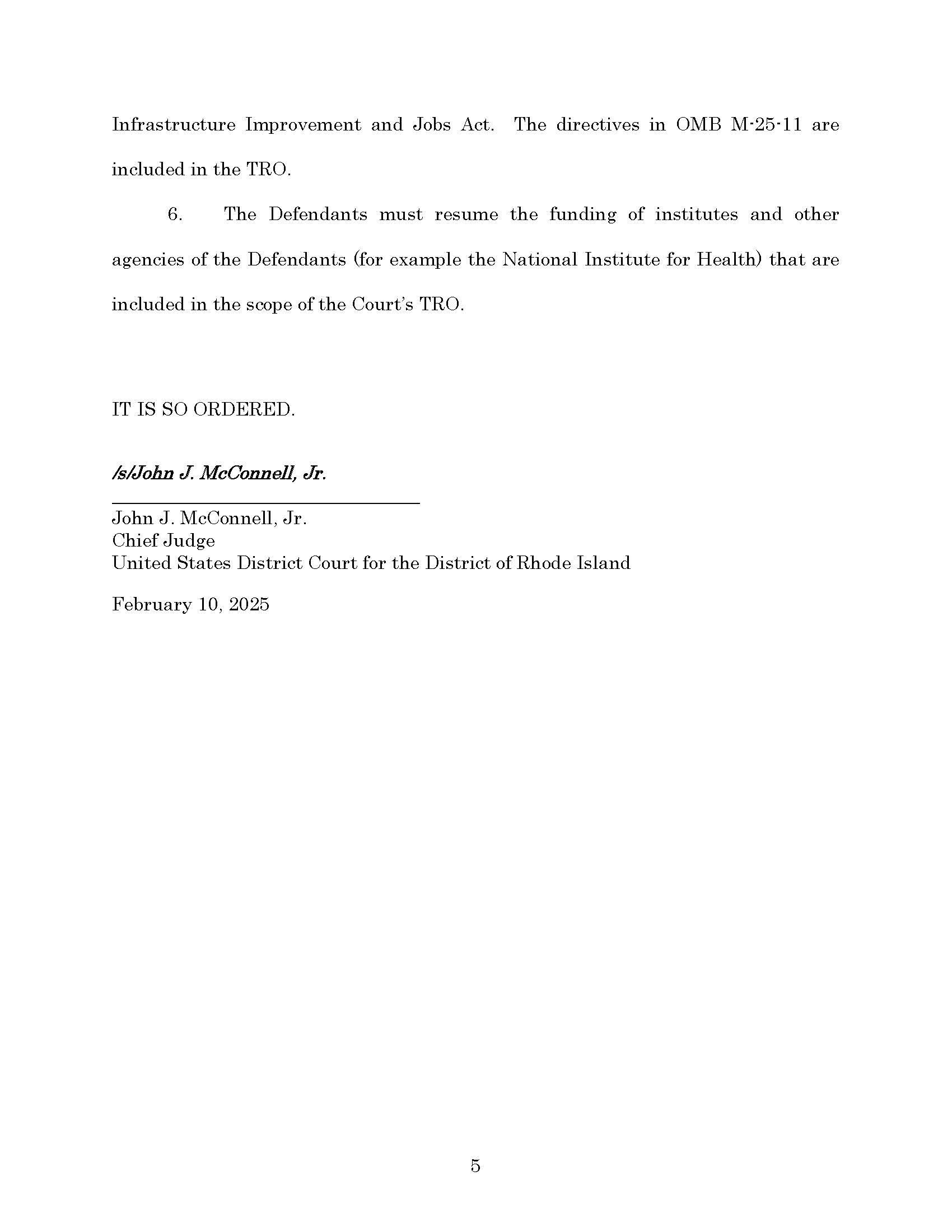 GET THE LATEST BREAKING NEWS HERE -- SIGN UP FOR GOLOCAL FREE DAILY EBLASTMcConnell writes, among other things, “The Defendants must immediately restore withheld funds, including those federal funds appropriated in the Inflation Reduction Act and the Infrastructure Improvement and Jobs Act. The directives in OMB M-25-11 are included in the TRO. The Defendants must resume the funding of institutes and other agencies of the Defendants (for example the National Institute for Health) that are included in the scope of the Court’s TRO.
