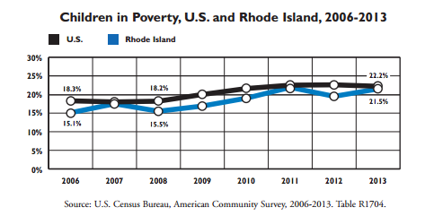 Rhode Island had the highest number of children living in poverty at 21.5% in 2013, according to new report released today by Rhode Island Kids Count.