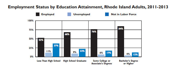 This equated to 44,923 of Rhode Island’s 208,700 children under the age of 18 living below the federal poverty threshold, which was an income of $18,769 for a family of three with two children, and $23,624 for a family of four with two children in 2013.