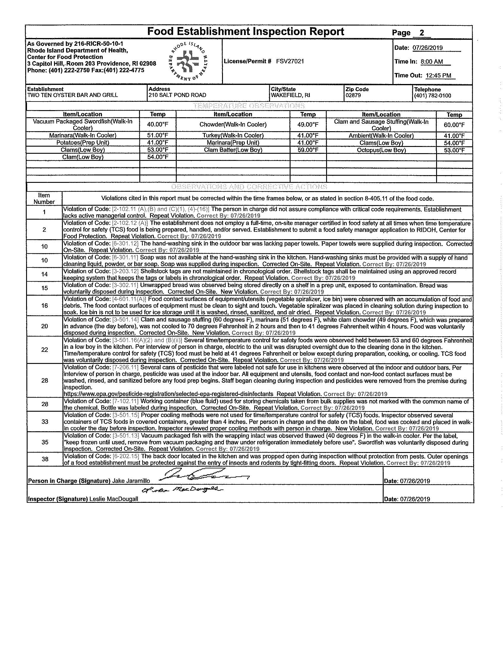 According to the Rhode Island Department of Health, the agency first inspected TwoTen last Thursday.