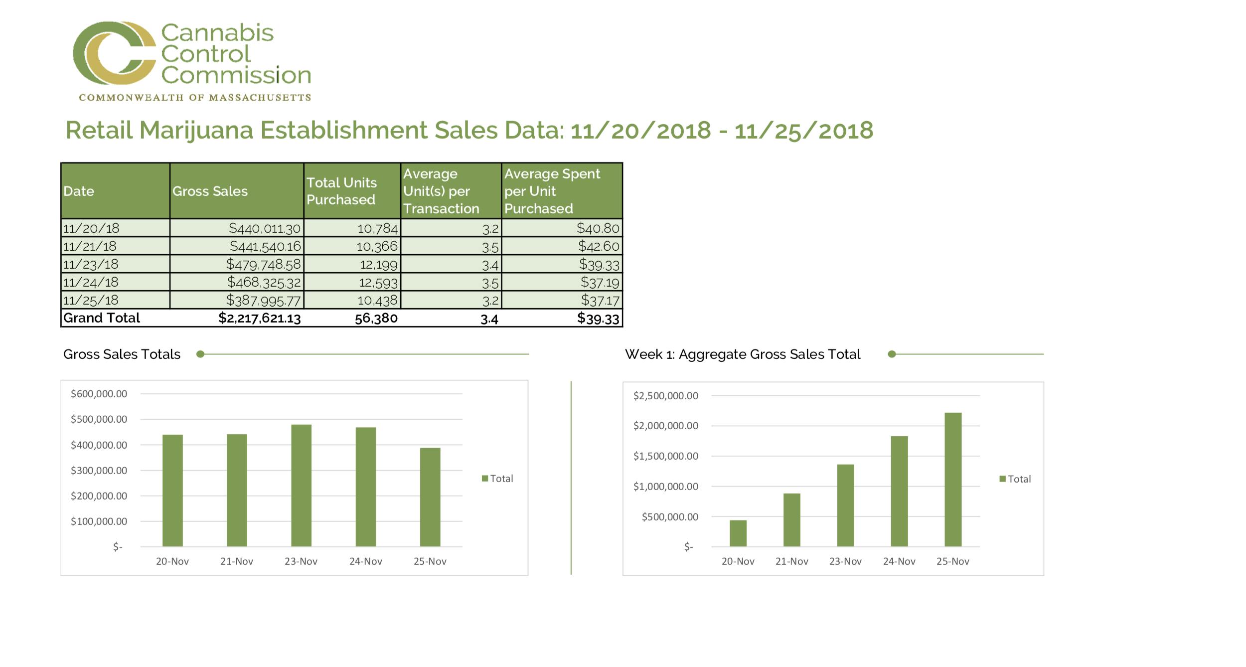 On Tuesday, Massachusetts announced over $2.2 million in gross sales in their first five days. (MORE BELOW)