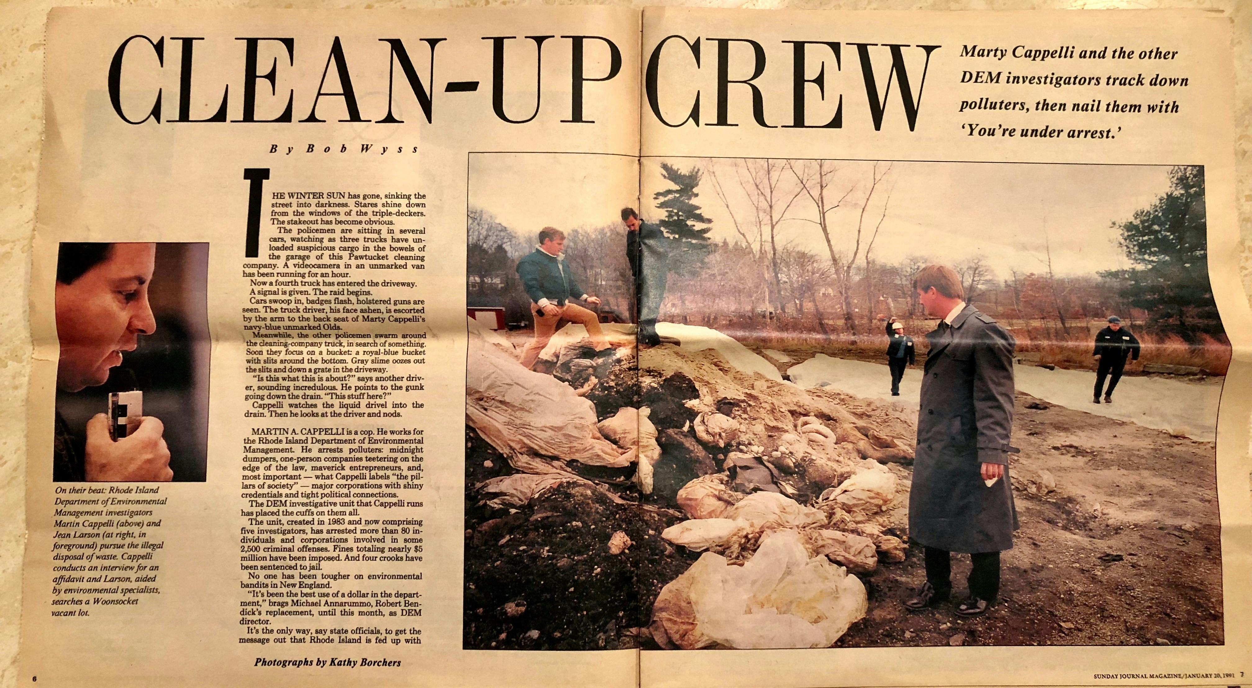 In 1991, the now-defunct Providence Journal Sunday Magazine wrote a cover story about the unit. The eight-page feature was written by then one of four environmental writers at the paper, Bob Wyss. The feature on Capelli and his unit was longer and more in-depth than most issues of the entire paper today.