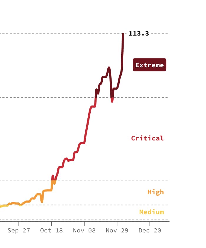 According to data tracked by Covid ActNow, Rhode Island has seen a nearly non-stop growth in the number of cases per 100,000 since September 6.