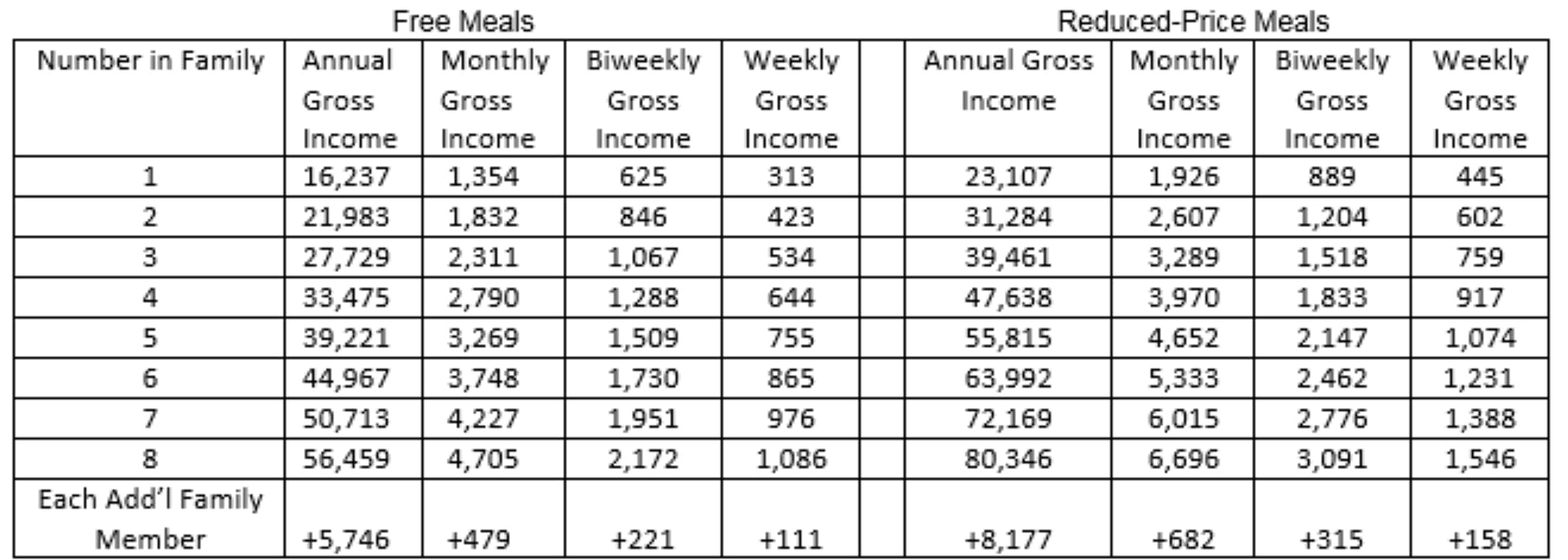 RIDE Announces Income Eligibility Guidelines for Free & Reduced Price Meals
