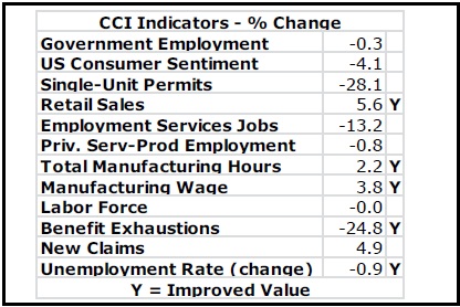 His most recent snapshot of the state of the economy—the monthly Current Conditions Index—shows that it contracted in October. The Index measures the health of the economy on the basis of a dozen factors, yielding a score on a scale of 0 to 100. Scores above 50 show an economy that is growing; those below 50 indicate that it is contracting. In October, the Index fell to 42—after four straight months of scores at 58. It is the lowest it has been since January 2010, when it was 33.
