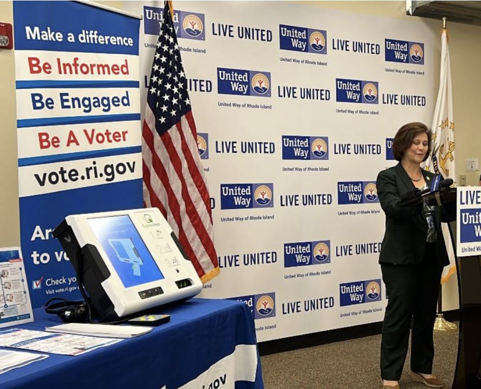 "As Secretary of State, I am committed to improving access to the ballot box while securing the integrity of every vote," said Gorbea at a press conference at the United Way. "Using new technology like the ExpressVote and 2-1-1 Voter Information Hotline ensures all Rhode Islanders can safely, surely, and independently make their voices heard this fall."