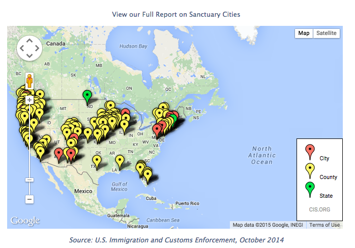 Earlier this month, the CIS characterized its map of "sanctuary states, counties, and the cities" as the following:
