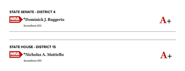 Both Mattiello and Ruggerio received A+ ranking from the NRA.