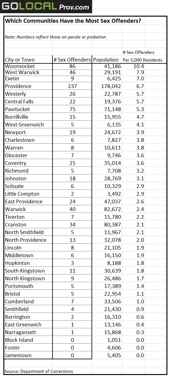 GET THE LATEST BREAKING NEWS HERE -- SIGN UP FOR GOLOCAL FREE DAILY EBLASTThe average ratio for an Ocean State community is 2.9 offenders for every 5,000 people.